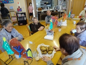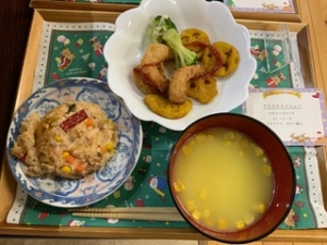 25日にはクリスマス会をしました🎄✨クリスマスメニュー🍤🌽を食べて、クリスマスプレゼントをお渡ししました🎁