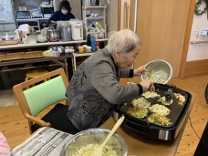 食レクでは、久し振りにお好み焼き作りをしました🤤焼きたてを皆で美味しく食べました😊