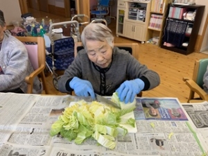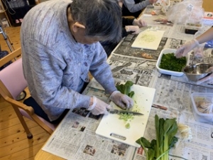 望年会ではお昼に美味しいお鍋を食べて暖まりました🍲手作り肉団子を作ったり、野菜を切っていただきました🥬🔪