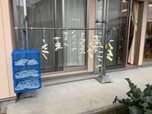 切った大根を網に入れたり、紐で結んでもらい、外に干しました。完成が楽しみです😊🎵