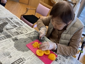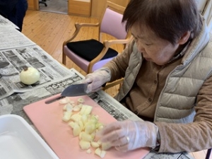 食レクとしてカレーライスとフルーツヨーグルト作りをしました🍛🍑🍊🍍協力して野菜や果物を切ったり、交代でお肉や野菜を炒めたりしました!!