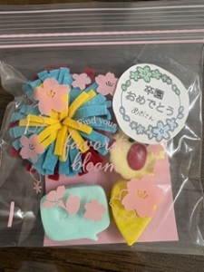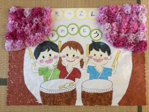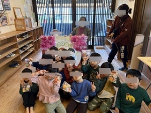 卒園式前にきいちご倶楽部からプレゼント(マグネット・ブローチ・壁画)を卒園児にお渡ししました。