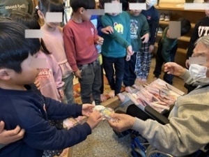 利用者様も同行してもらい、直接卒園児さんに手渡ししてもらいました。