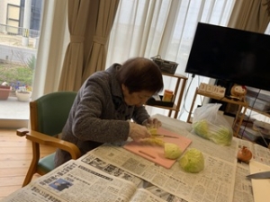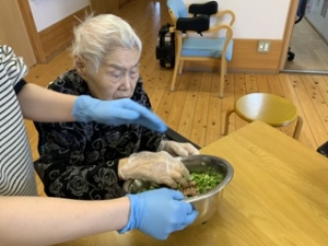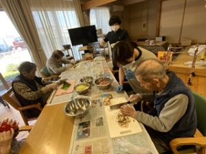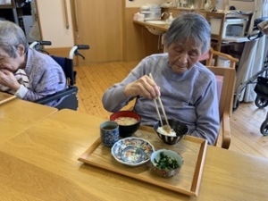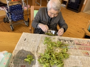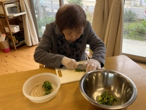 職員が持って来たふきのとうを使って、ふきのとう味噌を作り、お昼に食べました😊「もう春だね~」と皆さん、季節の移り変わりを感じておられました😊