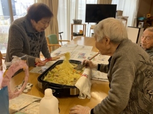 食レクでは焼きそばや餃子作りをしました!!出来たてを皆さん、口いっぱいにほおばっておられました😄